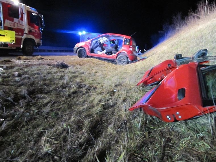 Aufgrund eines Ausweichmanövers war der Fahrer eines Kleinwagens von der Straße abgekommen und hatte sich mehrfach überschlagen.